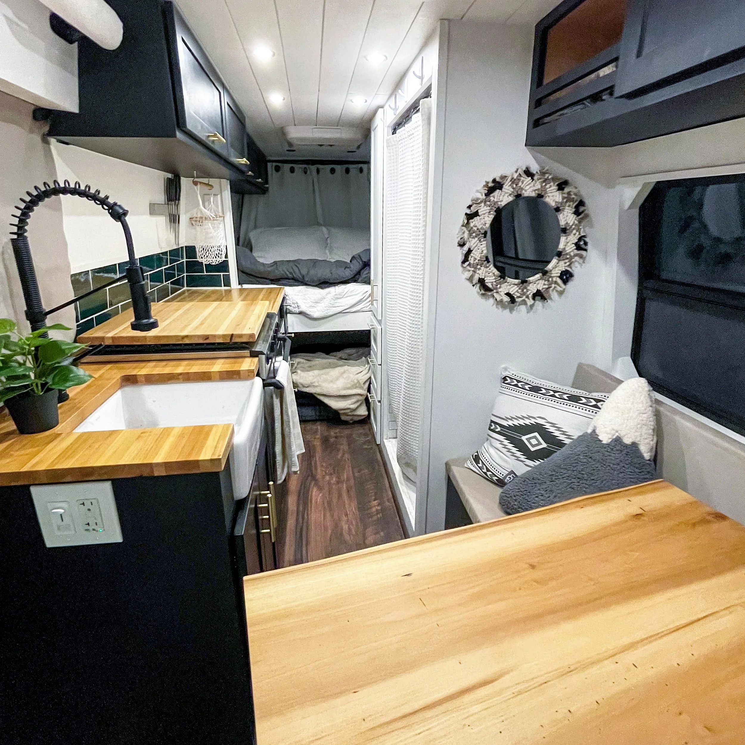 Vans come in various price ranges and amenities, but for ours, the key advantages compared to other camping methods are crystal clear: having a shower, toilet, and power. Power simplifies cooking and provides the convenience of charging electronics on the go. The ability to customize your van creates a homely atmosphere, whether it is your true home or home away from home on the weekends. It serves as a fantastic retreat during bad weather and offers a safer space for leaving pets.
